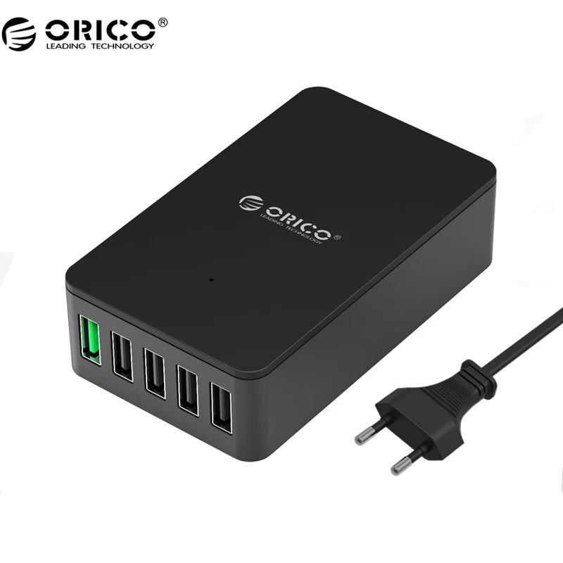 Good ORICO QSE-5U QC2.0 5 Port Desktop USB Charger for Smartphones and Tablets with EU Plug-Black For Sale at AliExpress